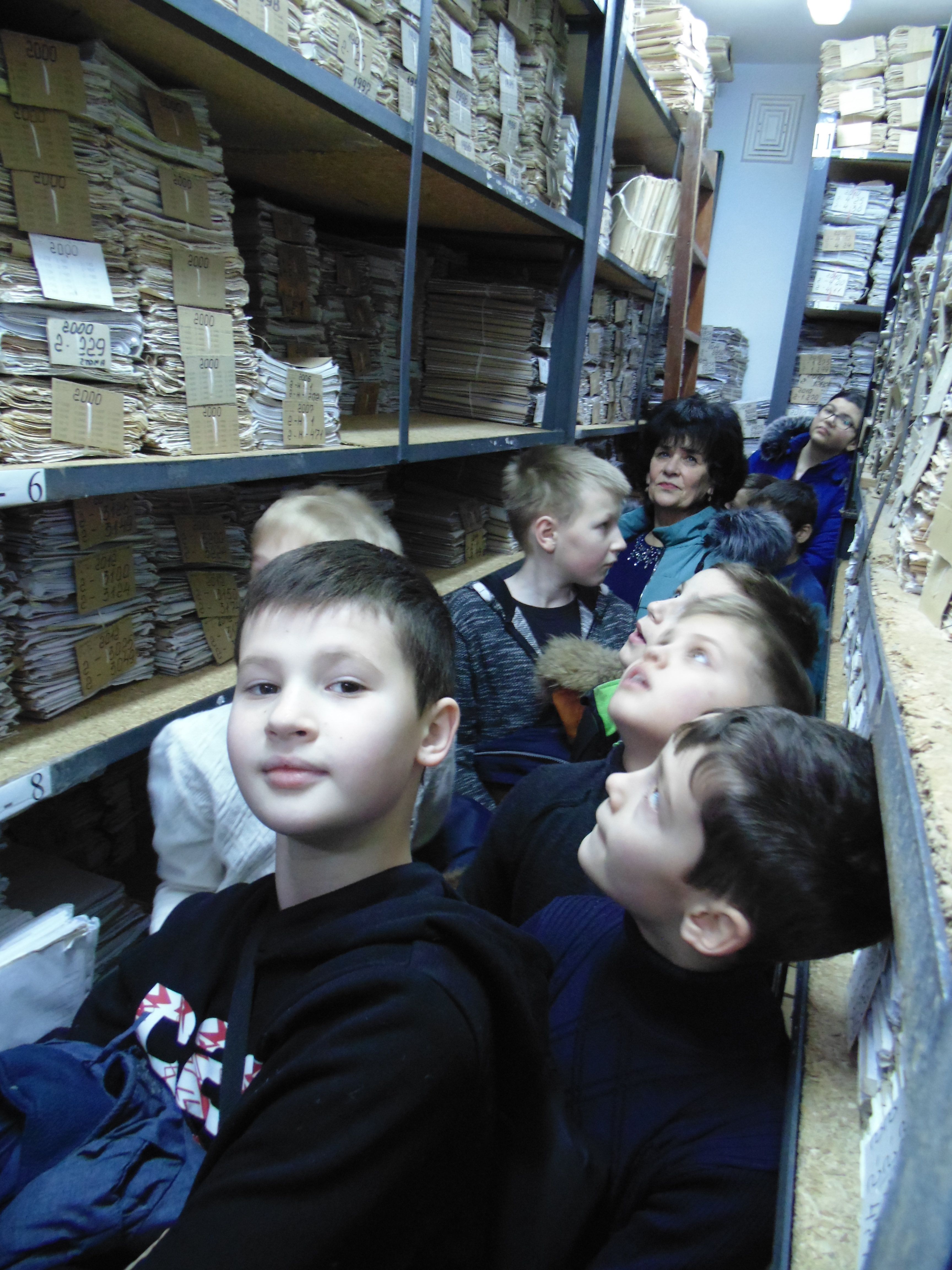 Зустріла учнів керівник апарату суду Алла Шевченко, яка провела коротеньку екскурсію приміщенням суду. Разом із керівником апарату суду діти відвідали архів суду та мали змогу побачити як зберігаються справи. Після цього Алла Шевченко показала як працює «великий комп’ютер» - інформаційний кіоск, що розміщений на 3 поверсі приміщення суду.