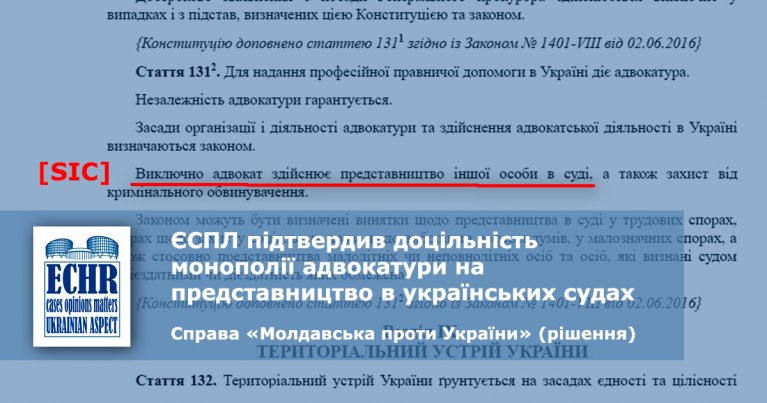 ЄСПЛ підтвердив доцільність монополії адвокатури на представництво в українських судах
