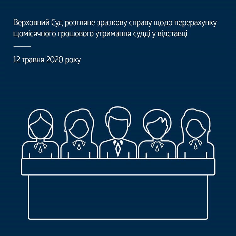 12 травня 2020 року Верховний Суд у складі колегії суддів Касаційного адміністративного суду планує розглянути зразкову справу за позовом судді у відставці до територіального органу Пенсійного фонду України.